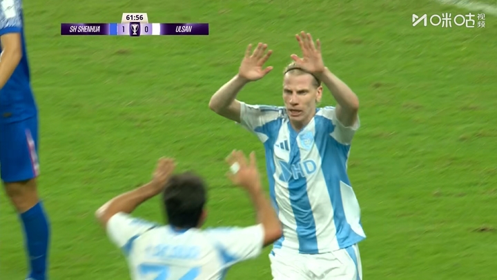 10月01日讯 亚冠精英联赛东亚区第2轮,上海申花vs蔚山HD。比赛第62分钟,卢德维格松凌空垫射为蔚山打进一球,申花主场遭1-1扳平。