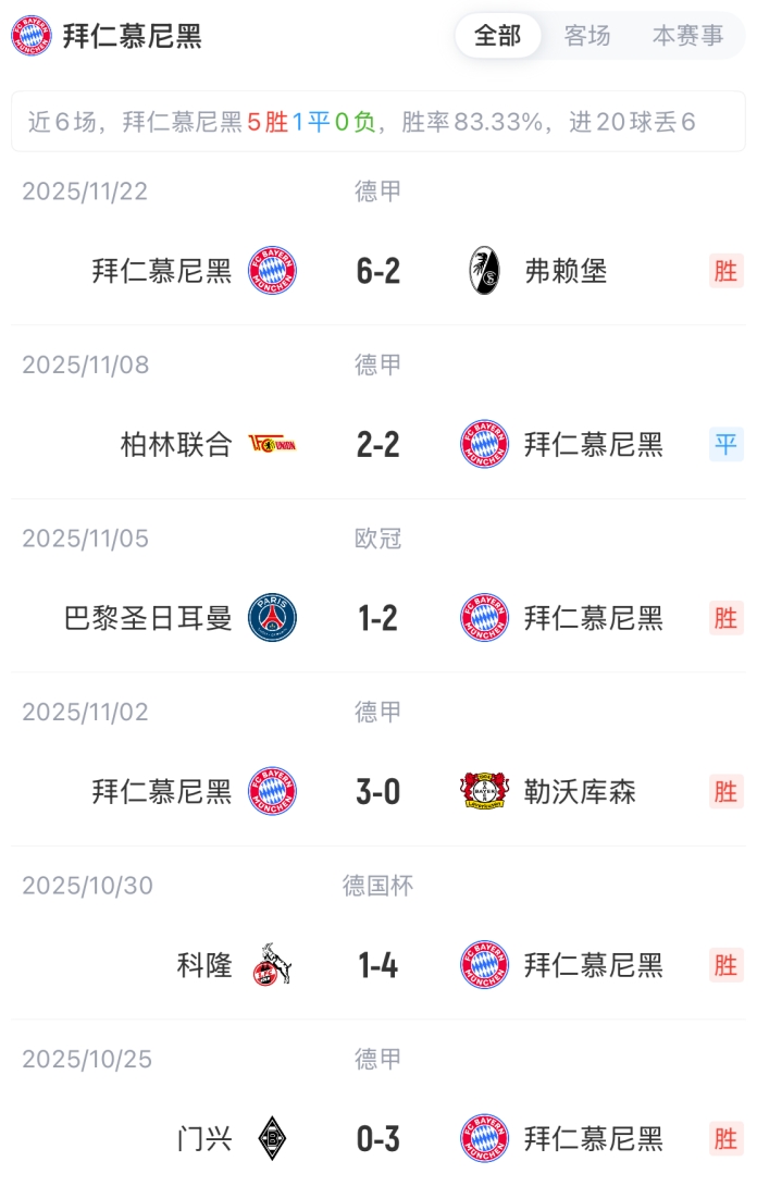 拜仁首发:1-诺伊尔、2-于帕梅卡诺、4-塔、44-斯坦尼西奇、6-基米希、27-莱默尔、45-帕夫洛维奇、7-格纳布里、9-凯恩、17-奥利塞、42-伦纳特·卡尔