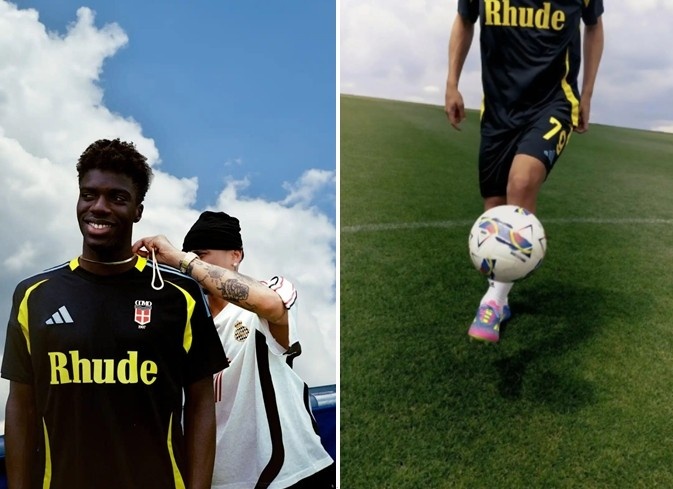 科莫联袂洛杉矶谗谄街头衣饰潮牌Rhude,联手推出了限量版球衣。