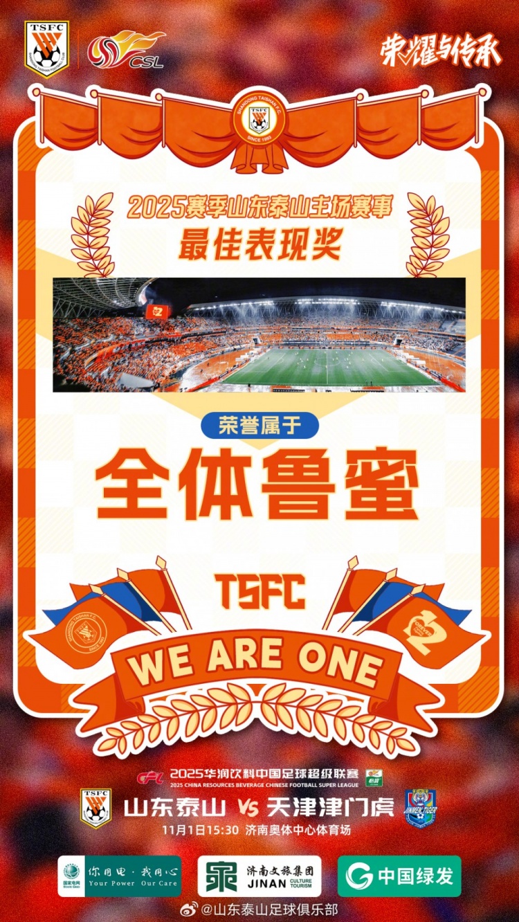 赛季主场收官战!泰山队发赛前海报:最好阐明奖属于合座鲁蜜