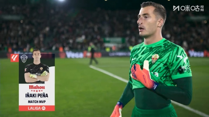 11月24日讯 皇马在本轮西甲对阵埃尔切,埃尔切门将佩尼亚在赛后被官方评为全场最好球员。