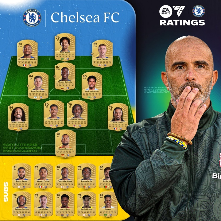 9东谈主80+!FC26切尔西评分:帕尔默+凯塞多87比肩第1,恩佐库库84分
