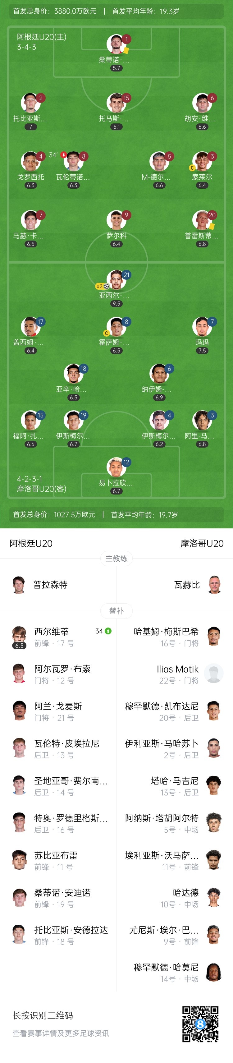第34分钟,阿根廷早早作出换东谈主调度,阿库纳被换下场,西尔维蒂替补登场↓