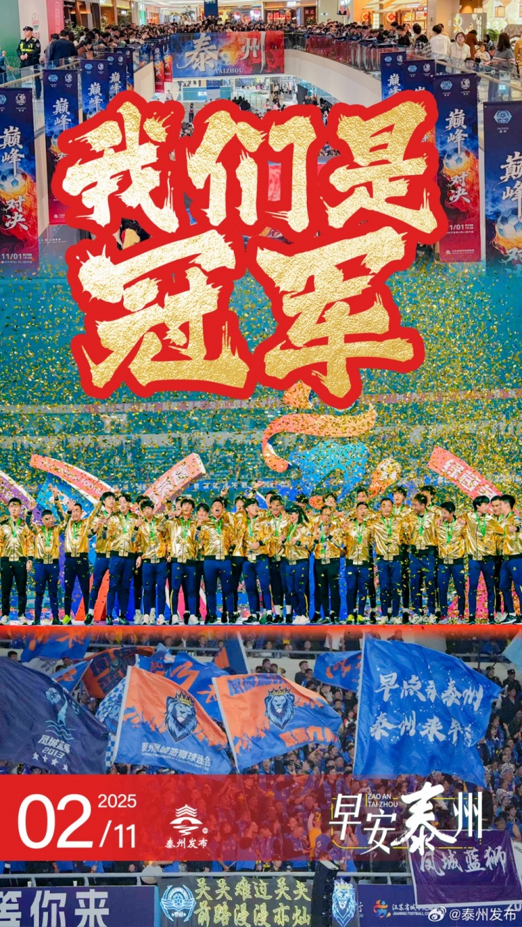 泰州发布道喜泰州队夺冠:确信确信的力量!确信遗址!