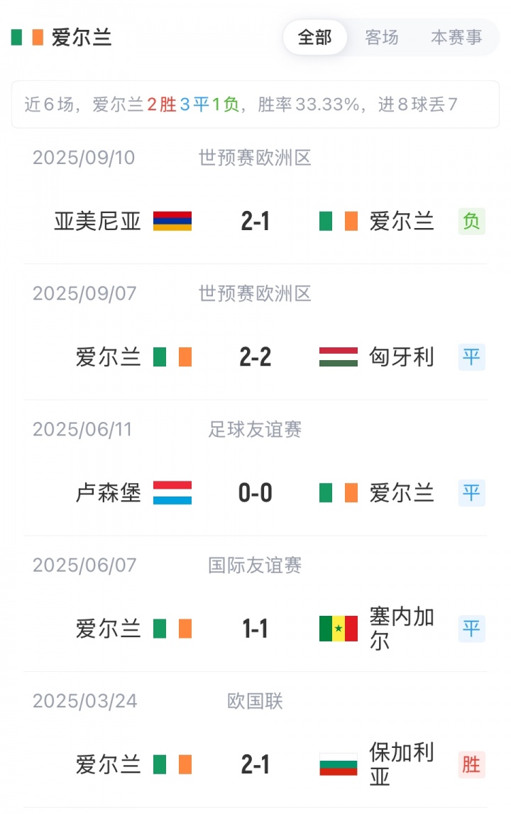 爱尔兰首发:1-凯莱赫、5-奥布莱恩、4-奥谢、22-柯林斯、6-库伦、8-默伦比、21-艾博索莱、2-科尔曼、3-曼宁、9-弗格森、20-奥贝恩