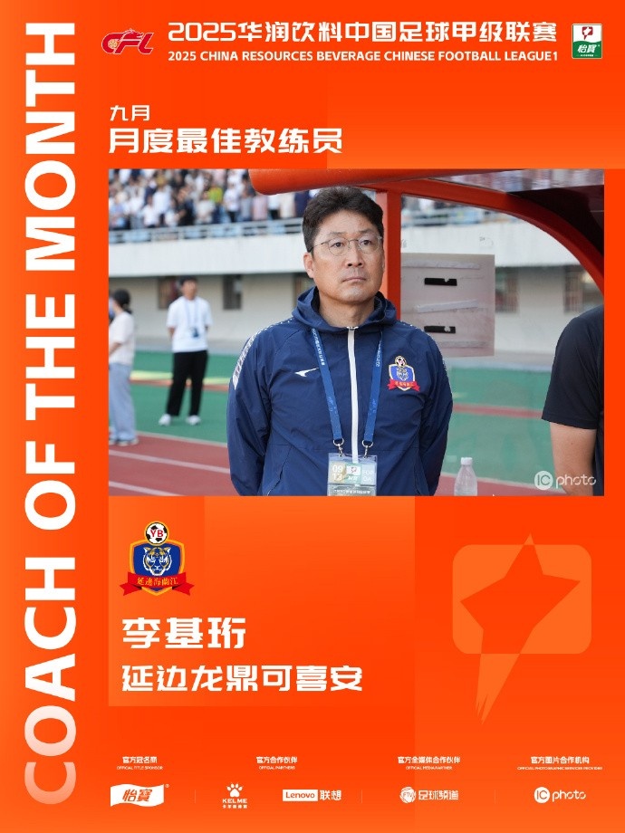 李基珩率领的延边龙鼎9月四战全胜,是中甲9月独一全胜的球队,同期亦然中甲9月独逐一支0失球的球队。
