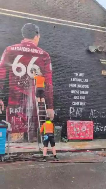 【关连新闻】阿诺德利物浦壁画今晨惨遭污损,被涂鸦大字:“老鼠、重逢吧”