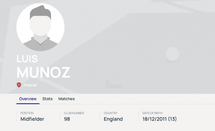 路易斯·穆尼奥斯树立于2011年12月18日,目客岁仅13岁,司职紧迫型中场。