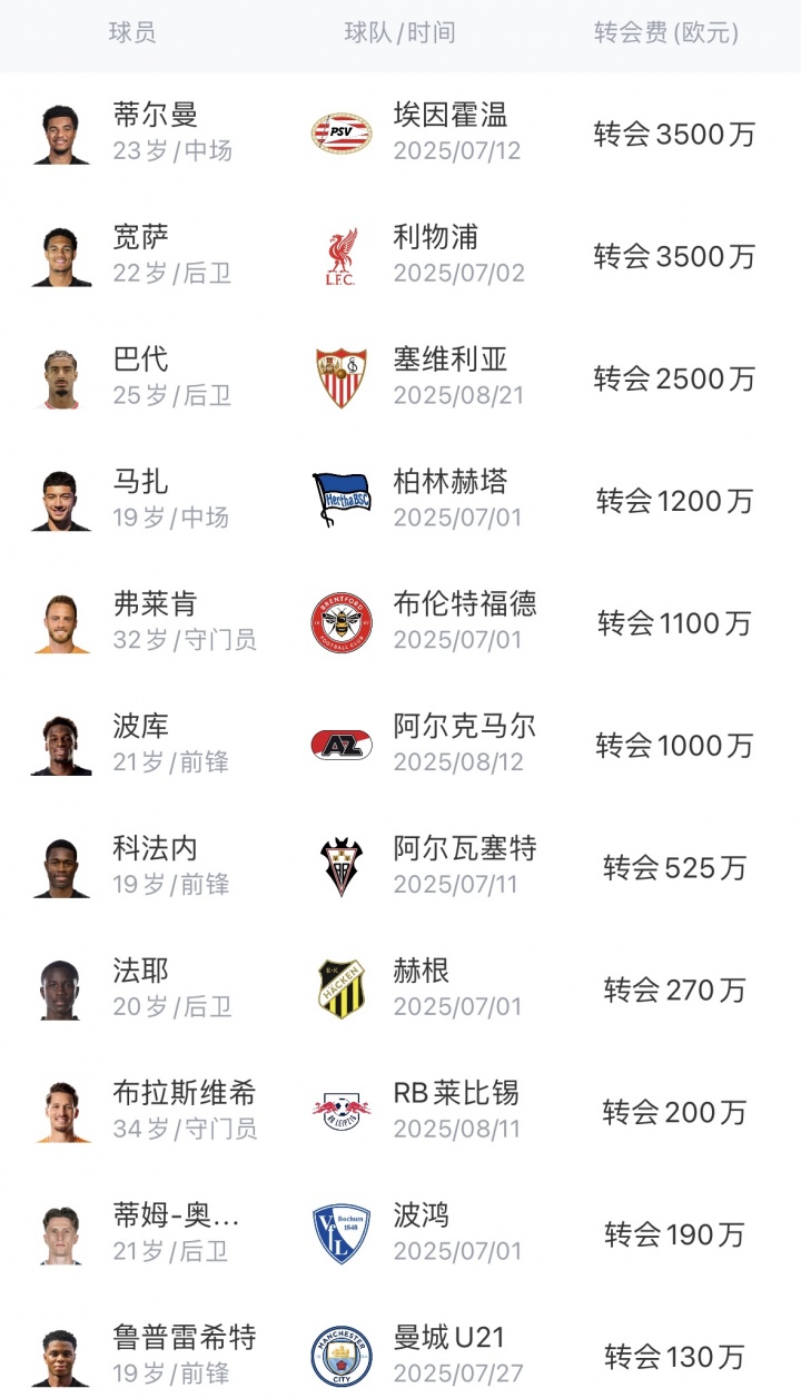 今夏,药厂已有17东说念主离队,其中有广泛上赛季的声势中枢球员,药厂凭借出售共赚得2.295亿欧;另有18东说念主加入球队声势,共破耗1.41亿欧,新加入球队声势的18东说念主平均年事仅22.2岁。